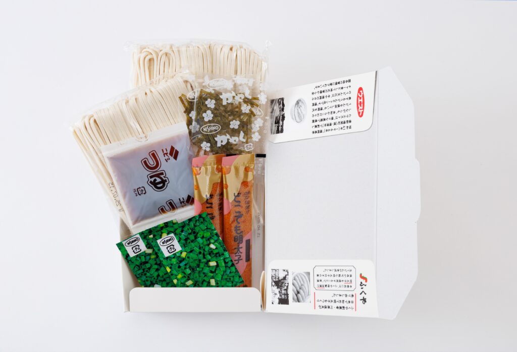 ④別添の「油漬け明太子」、「ねぎ」、「のり」を加えてください⑤別添の「九州甘口醤油のだし汁」をかけて、